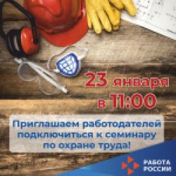 Министерство труда и занятости населения Смоленской области сообщает, что 23 января в 11:00 часов совместно с Государственной инспекцией труда в Смоленской области пройдет семинар по теме «Ситуация с производственным травматизмом в организациях жилищно-коммунального хозяйства. Меры, направленные на соблюдение требований охраны труда, предъявляемых к выполнению работ в зимнее время года».