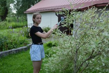 Работа в музее мне нравится. Мы убираем территорию, обрезаем кустарник, Илья сгребал сено, я полола клумбу. Выполняем и другие мелкие задачи, например, что-то переставить или принести.