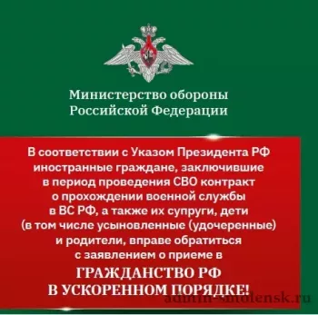 4 января 2024 года вступил в силу Указ Президента РФ от 04.01.2024 N10 "О приеме в гражданство Российской Федерации иностранных граждан, заключивших контракт о прохождении военной службы в Вооружённых Силах Российской Федерации или воинских формированиях, и членов их семей".